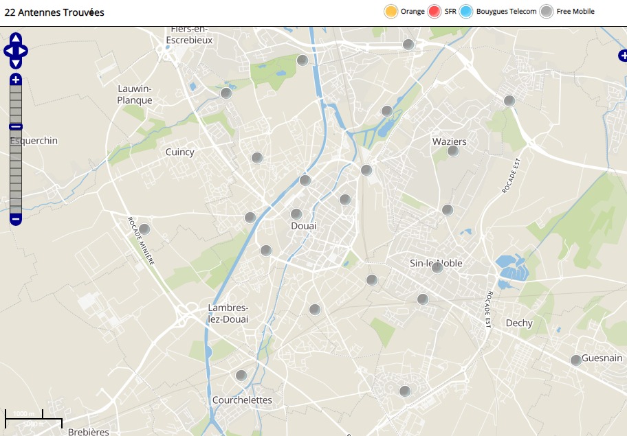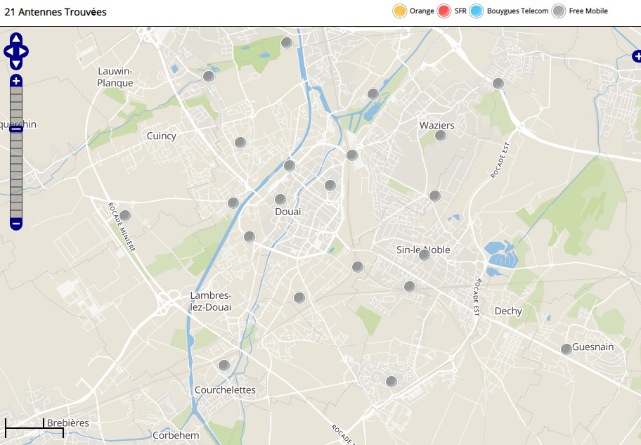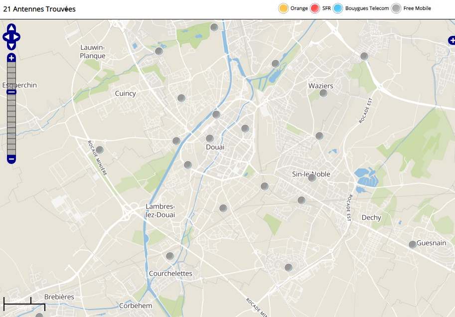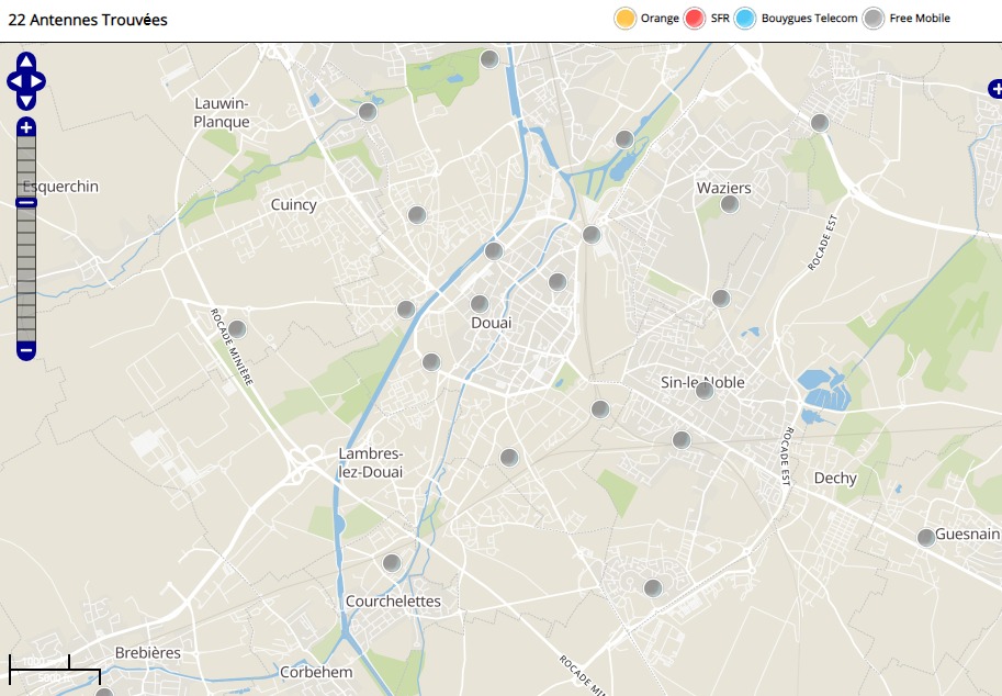 Découvrez la répartition des antennes mobiles Free 3G/4G sur Douai dans le Nord