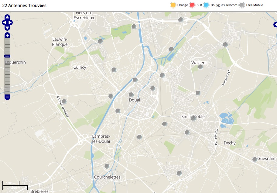 Free a également implanté 12 antennes mobiles 3G dans la ville de Douai (antennes non-actives incluses).