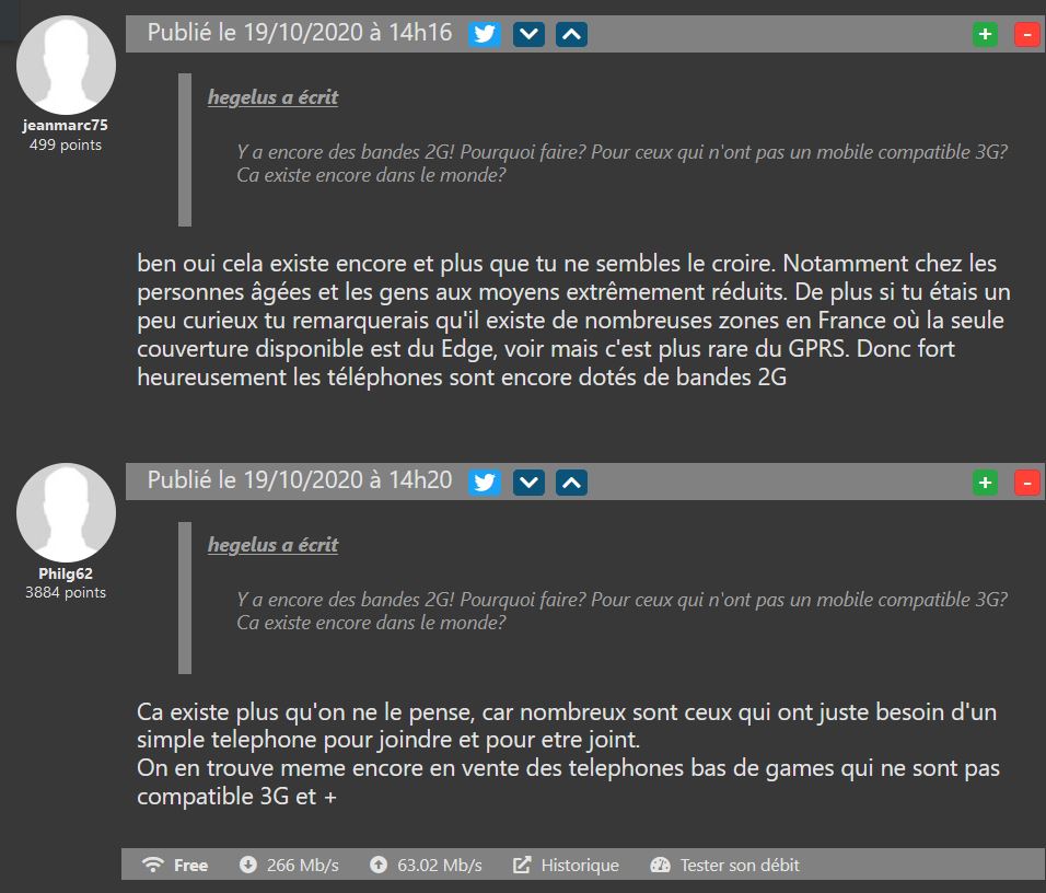 Face à l’arrivée de smartphones qui relèvent presque tous du bijou technologique, avec 5G, processeur presque aussi puissant que celui d’un vieux PC etc… Certains se posent la question “pourquoi on propose encore la 2G” ? La réponse est toute faite, mon cher hegelus , et ce sont deux Freenautes qui l’expliquent.