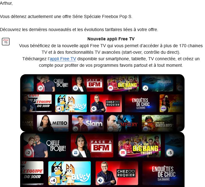 Les abonnés à l’offre sans TV de Free se voient rappeler qu’ils peuvent accéder à plus de 170 chaînes gratuitement malgré tout grâce à leur opérateur.