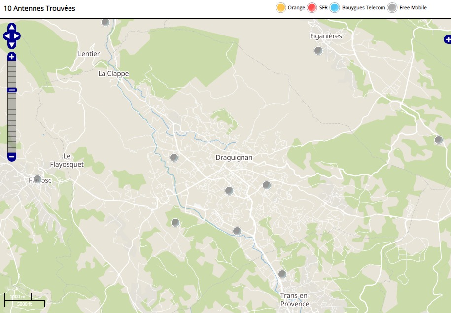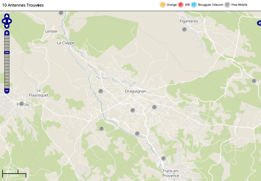 Découvrez la répartition des antennes mobiles Free 3G/4G sur Draguignan dans le Var