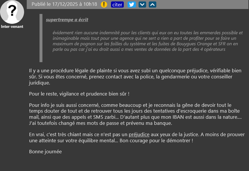Free fait face à une possible sanction financière majeure après la révélation l’année dernière d’un vol massif de données personnelles. La Commission nationale de l’informatique et des libertés (CNIL) a ouvert une procédure visant l’opérateur, à l’issue de laquelle une amende pourrait être prononcée. Un peu plus d’un an après le piratage massif ayant exposé les données personnelles de 19,2 millions de ses abonnés, la CNIL envisage en effet d’infliger à l’opérateur une amende pouvant atteindre 48 millions d’euros pour des manquements dans la sécurisation des données clients. Et certains aimeraient se voir dédommager du préjudice subi, mais en même temps… Ce n’est pas si simple d’établir un quelconque montant…