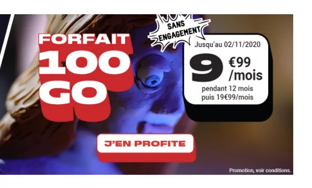 Une offre intéressante que propose NRJ Mobile, un forfait 100Go pour 9,99€ par mois et pas que pendant 6 mois, comme peuvent le proposer la plupart des forfaits en promotion. Pendant 12 mois et sans engagement, bénéficiez de ce forfait avec appel, SMS/MMS illimités en France. Concernant l’enveloppe data, au-delà des 100Go, le débit sera réduit.