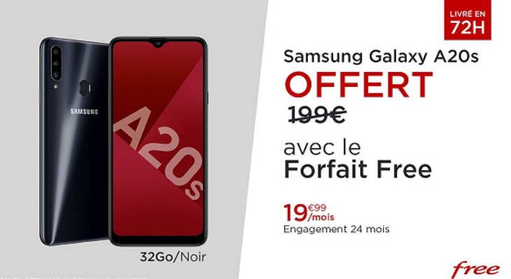 L’offre Forfait Free avec Samsung Galaxy A20S offert, proposée sur le site Veepee, devait se terminer ce samedi matin. Elle est prolongée de quelques jours.