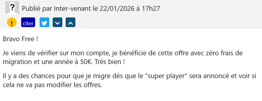 Free continue d’inciter certains abonnés Freebox Delta à changer d’offre. Après avoir ouvert, l’été dernier, la migration sans frais vers la Freebox Ultra Essentiel, l’opérateur va plus loin : il permet désormais à une partie de ses abonnés Delta à première vue avec Player Devialet ou Player Pop (à vérifier au cas par cas) de basculer vers son offre la plus haut de gamme, la Freebox Ultra, sans frais de migration et avec une remise tarifaire identique à celle proposée aux nouveaux clients. De quoi rendre heureux ceux concernés !