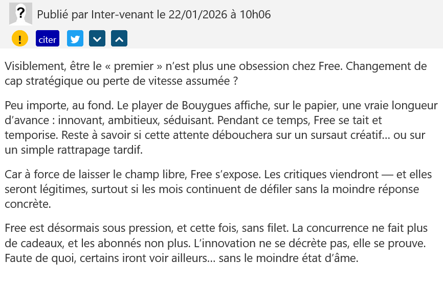 Bouygues met la pression à Free, des abonnés Freebox heureux… Vos meilleures réactions à l’actu de Free et des télécoms