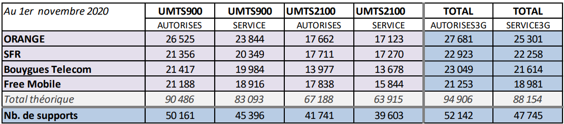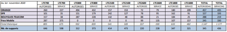 - Free Mobile (18 003 sites, + 330 en octobre 2020).