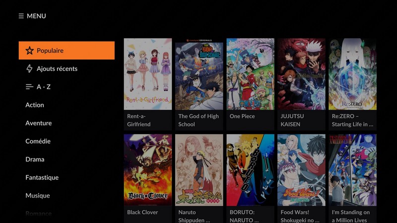 L’interface de Crunchyroll propose deux façons de naviguer parmi les contenus.