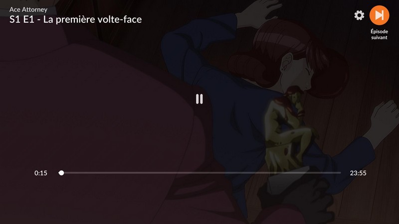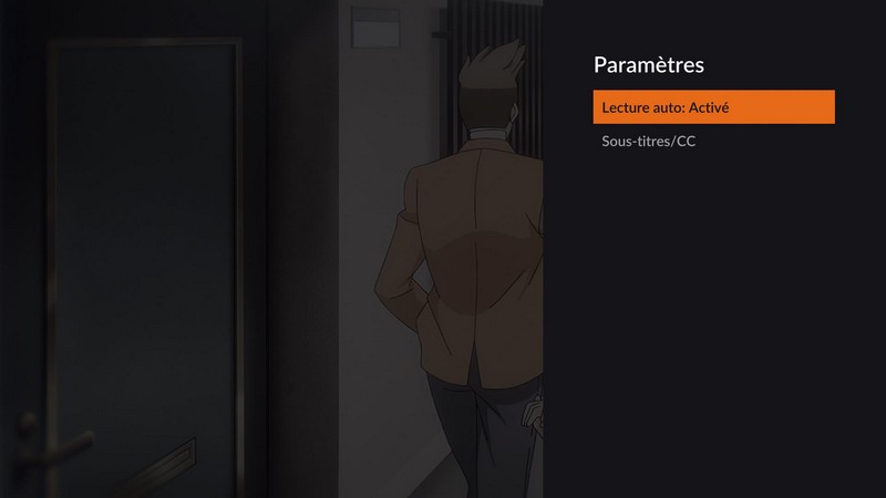 Un appui vers le haut donne accès aux options de sous-titrages, mais permet aussi d’afficher le bouton pour passer à l’épisode suivant (dans le cas d’une série).