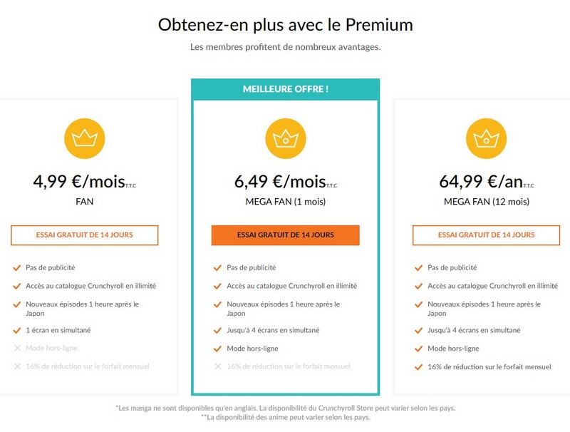 Pour se faire une idée, trois formules d’abonnement à 4,99 euros par mois (1 écran), 6,49 euros par mois (4 écrans et mode hors ligne) ou 64,99 euros par an (4 écrans et mode hors ligne) sont proposées avec à chaque fois un essai gratuit de 14 jours.