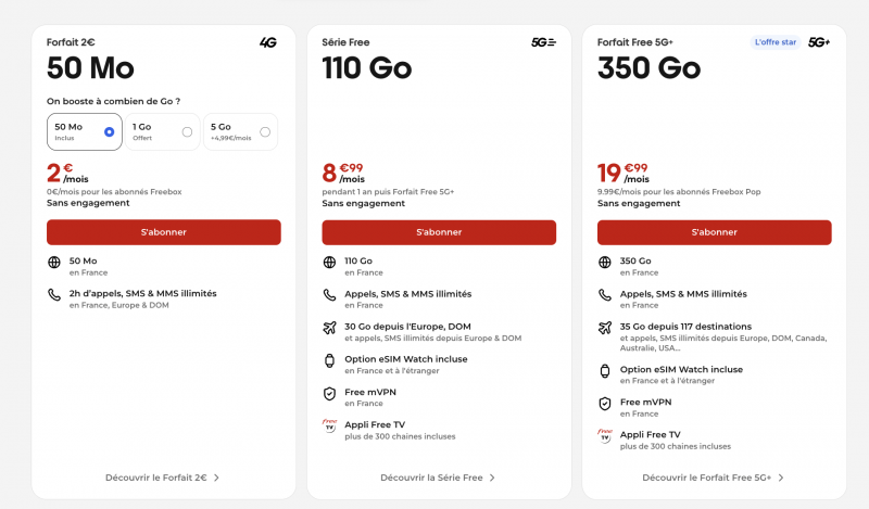 Mercredi dernier, Free Mobile avait pourtant surpris en modifiant la présentation de son emblématique forfait à 2 euros sur son site web. Sur sa page d’offres, ce n’était plus la version minimaliste avec 2 heures d’appels et 50 Mo de data qui apparaissait en premier, mais une déclinaison plus généreuse, intégrant un Booster 1 Go offert, lequel avait été lancé en septembre 2025.