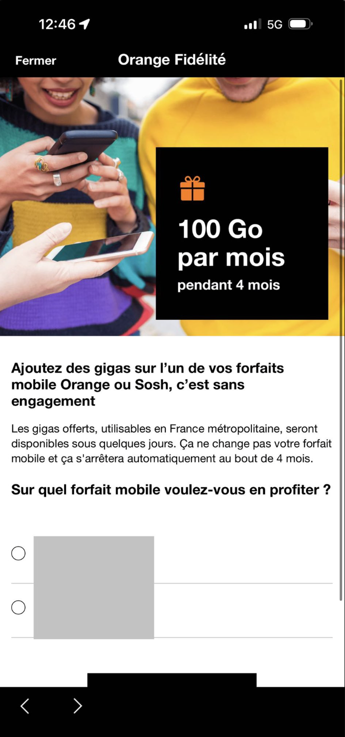 Orange gâte à nouveau certains de ses abonnés mobiles avec un bonus de data gratuit via son programme Orange Fidélité. Plusieurs clients ont récemment vu apparaître, dans leur espace abonné, une offre permettant de bénéficier de 100 Go supplémentaires par mois pendant quatre mois, sans engagement