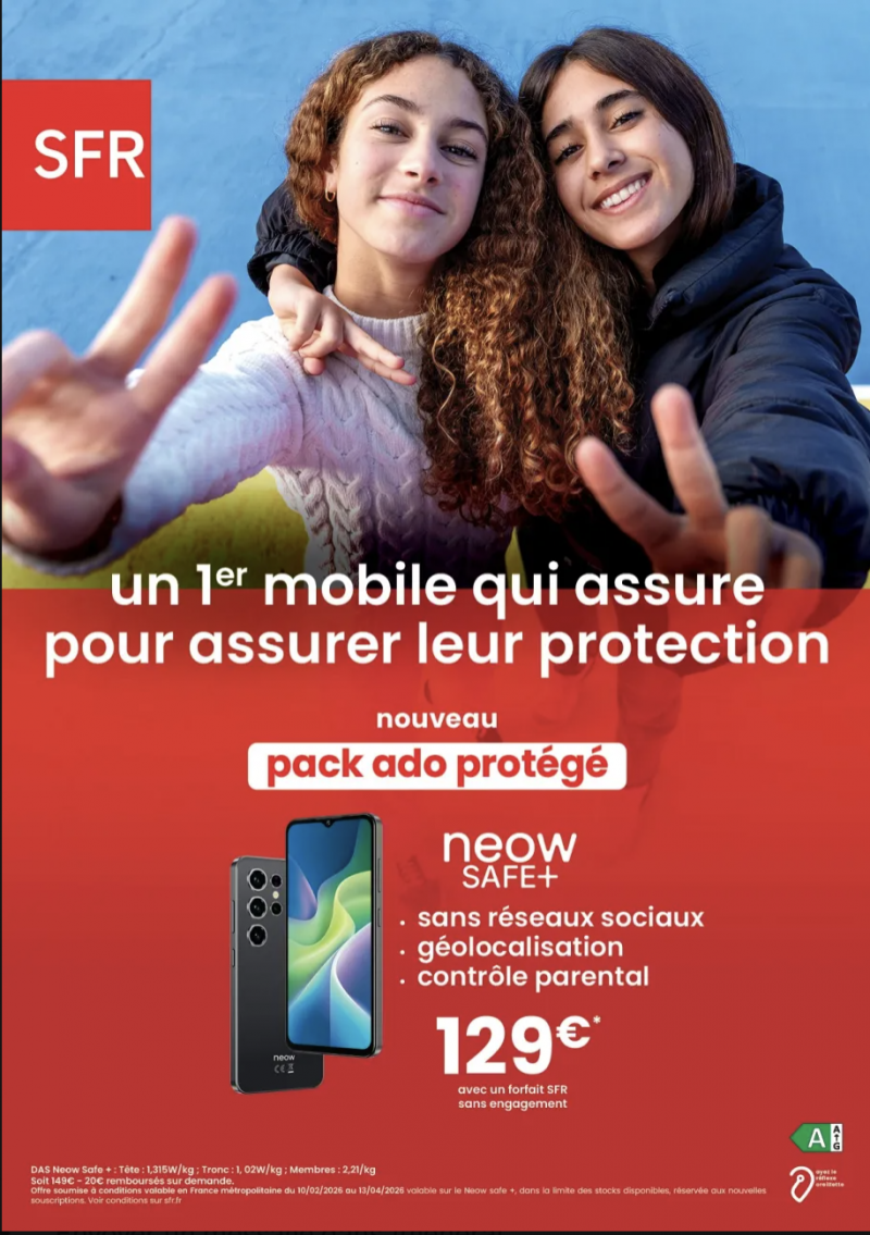 Au cœur de cette offre se trouve le Neow Safe Plus, un smartphone conçu spécifiquement pour les adolescents. Déjà lancé à La Réunion, où il a rencontré un certain succès, l’appareil est désormais proposé en métropole. Fabriqué par une marque française, il s’inscrit, selon SFR, dans une « approche progressive et éducative du numérique », avec pour objectif de « garantir la sécurité numérique des adolescents et la sérénité des parents ».