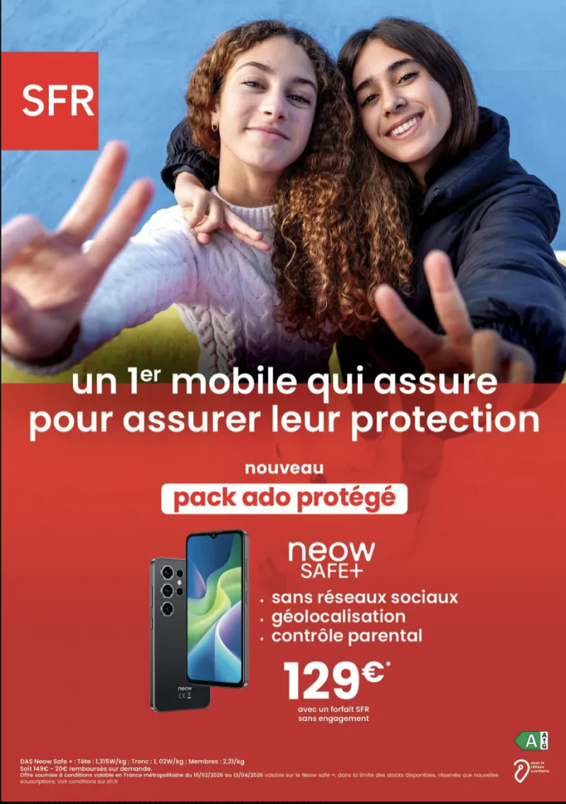 Pour répondre aux préoccupations des familles face aux usages numériques des plus jeunes, SFR lance le « pack ado protégé », associant le smartphone Neow Safe Plus à un forfait mobile adapté.