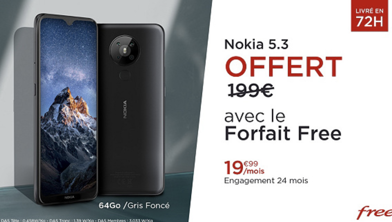 Comme prévu, Free vient de dégainer sa nouvelle vente privée sur Veepee. Il s’agit de son forfait 100 Go avec le smartphone Nokia 5.3 offert.