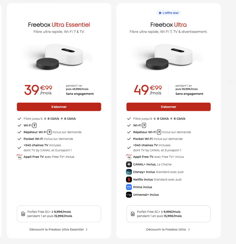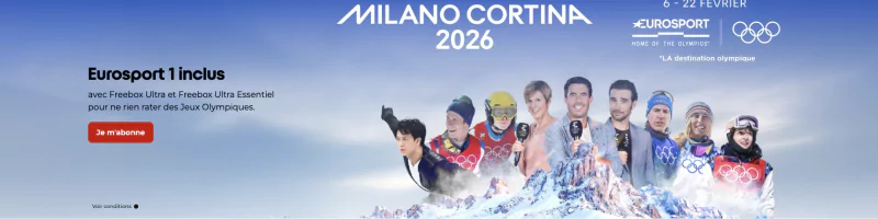 Par ailleurs, dans un bandeau dédié, Free précise qu’Eurosport 1 est incluse avec les Freebox Ultra et Ultra Essentiel afin de “ne rien rater des Jeux Olympiques”. Une manière d’exploiter l’actualité sportive pour renforcer l’attractivité de ses offres fibre 8 Gbit/s et Wi-Fi 7. Aujourd’hui, chez Free, seule Eurosport 1 est accessible en direct sur les Freebox, disponible également via le Pack Famille by Canal+ Eurosport 1 à 4,99€/mois.  L’opérateur a réussi à maintenir cette présence après la fin du contrat de distribution des chaînes Eurosport par Canal+ fin 2024, grâce à un accord conclu directement avec Warner Bros. Discovery. Les abonnés  Freebox Ultra, Révolution avec TV by Canal, ou encore Delta qui bénéficiaient jadis de cette chaîne de manière incluse dans leur offre, continuent ainsi depuis d’en profiter sans surcoût.