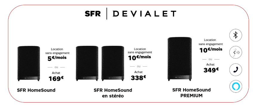 S’il est possible d’acheter tout simplement les enceintes HomeSound, SFR propose également une location du matériel sans engagement. Trois formules sont proposées.