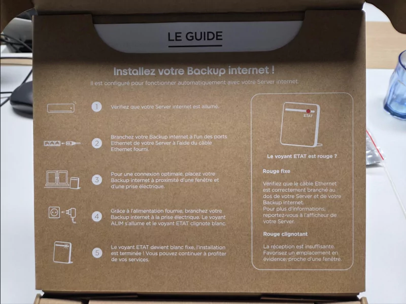 Free continue d’optimiser ses solutions de continuité de service. Déjà rapporté dans nos lignes, l’opérateur a introduit cette semaine une nouvelle version de son Backup internet Freebox, un équipement bien connu des abonnés puisqu’il permet de maintenir une connexion internet en cas de panne du réseau fixe. Sur X, Tino_X83, le petit fouineur de la communauté Free dévoile à présent des clichés de ce nouveau boîtier, l’occasion de découvrir à quoi le ressemble à l’avant et à l’arrière. Le coffret, classique chez Free, est également présenté, sur celui-ci sont notamment affichées les étapes à suivre pour l’installer.