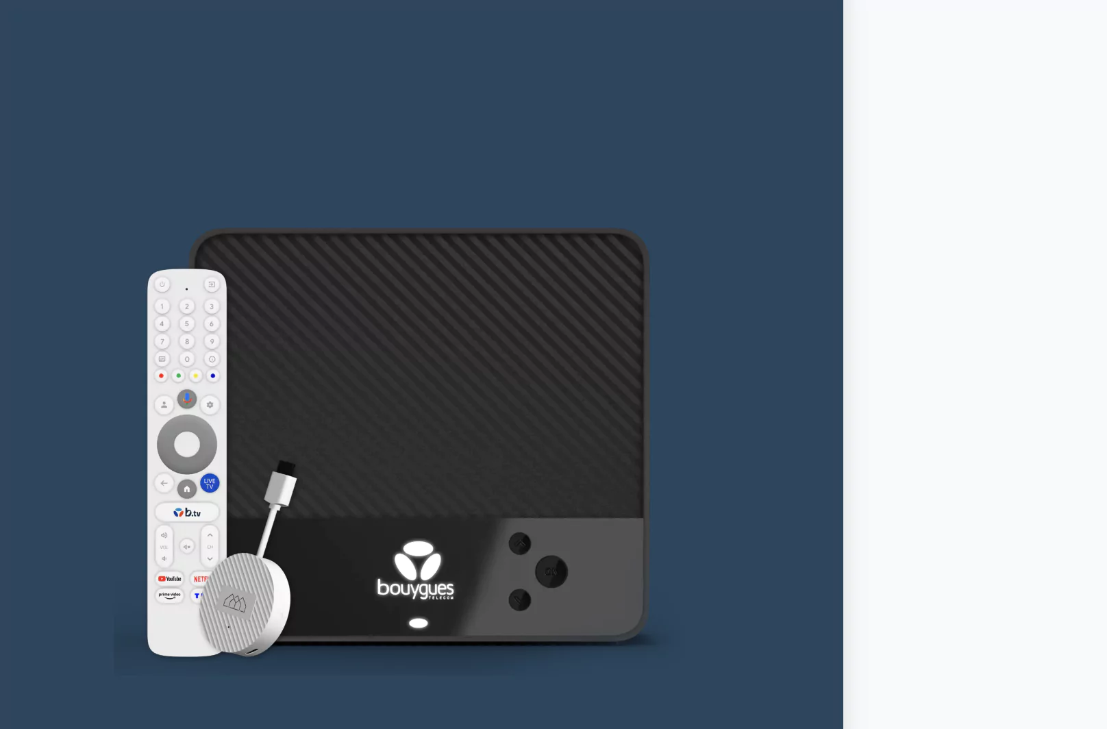 L’offre repose sur une connectivité 5G pouvant atteindre jusqu’à 1,1 Gb/s en téléchargement, associée à du WiFi 7 bi-bande, avec les dernières technologies comme le MLO et le 4K-QAM, ainsi qu’un répéteur inclus sur demande. Côté TV, l’opérateur mise sur une clé compacte sous Google TV intégrant directement B.tv, donnant accès à plus de 180 chaînes, 100h d’enregistrement sur le Cloud. Il est possible de s’y abonner à une adresse déjà éligible à la fibre à condition d’être desservi par la 5G.