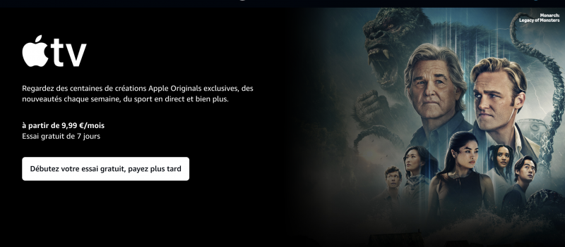 Prime Video franchit une nouvelle étape dans sa mutation en plateforme centralisatrice. Le service d’Amazon accueille désormais Apple TV parmi ses abonnements additionnels, permettant aux utilisateurs de souscrire et de regarder les contenus de la plateforme d’Apple directement depuis l’interface Prime Video. Concrètement, Apple TV devient un « channel » supplémentaire, au même titre que HBO Max, Paramount+, Ciné+ OCS et de nombreux autres services de streaming déjà accessibles via ce système. L’utilisateur peut ainsi regrouper plusieurs services payants dans une seule application, avec une facturation unifiée et une navigation centralisée. À partir d’aujourd’hui, Apple TV est disponible en France via Prime Video au prix de 9,99 € par mois ou 99 € par an. Les clients Amazon qui s’abonnent à la plateforme de la firme de Cupertino auront donc accès à du divertissement premium, notamment des séries à succès primées et des films à succès mondiaux tels que Hijack, Pluribus, Monarch: Legacy of Monsters, Silo, The Gorge, Carême, Masters of the Air, Ted Lasso, Vrais Voisins, Faux Amis, Margo a des problèmes d’Argent et bien d’autres, ainsi que du sport en direct.