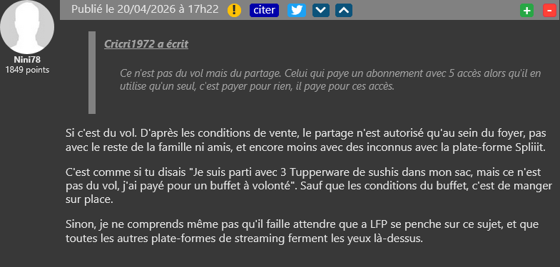 La lutte contre le partage de comptes franchit une nouvelle étape dans le football français. La Ligue de football professionnel vient d’obtenir en justice la condamnation de la plateforme Spliiit, accusée de faciliter le partage d’abonnements à Ligue 1+ en dehors du cadre autorisé. Par une ordonnance de référé rendue le 15 avril 2026, le tribunal judiciaire de Paris a donné raison au groupe LFP. Les juges ont estimé que l’activité de Spliiit constituait un « trouble manifestement illicite », en raison de son rôle dans la mise en relation d’utilisateurs pour partager des abonnements payants. Une décision qui pourrait faire date, et inspirer d’autres plateformes à attaquer Spliiit, mais surtout qui divise : certains considèrent qu’il s’agit surtout d’un moyen de réduire la facture tout en payant un service, d’autres considèrent qu’il s’agit de “vol” pur et simple.