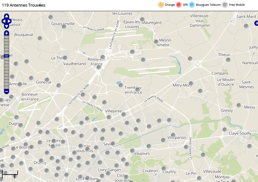 Découvrez la répartition des antennes mobiles Free 3G/4G sur Tremblay-en-France en Seine-Saint-Denis
