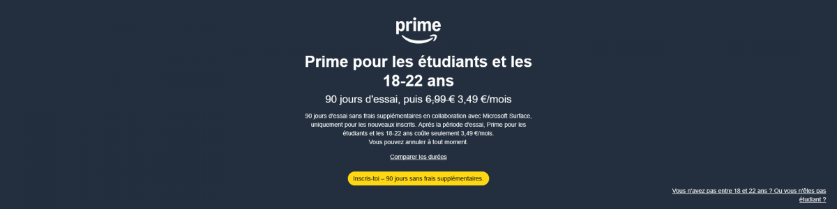 Étudiants, mais aussi jeunes de 18 à 22 ans, peuvent bénéficier d’un tarif réduit sur Amazon Prime. Une opportunité intéressante pour les abonnés Freebox qui doivent normalement payer l’option plein tarif.