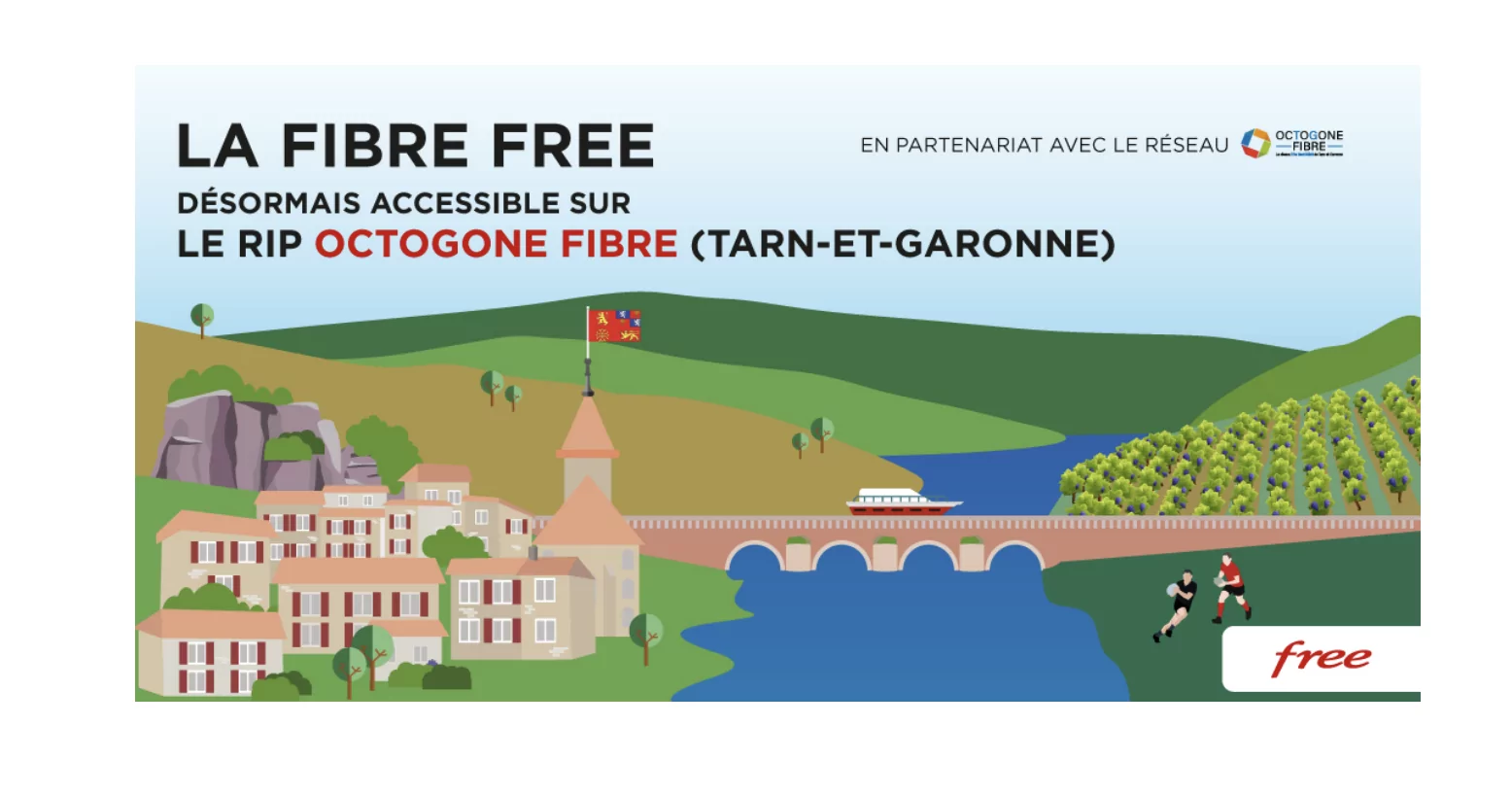 Plus vite que prévu, Free annonce ce matin l’arrivée de ses offres fibre pour les habitants du Tarn et Garonne desservis par le réseau d’initiative publique Octogone Fibre d’Altitude, dont l’objectif est de couvrir le département par un réseau 100% fibre optique d’ici 2022, soit 103 400 lignes FTTH sur 191 communes.