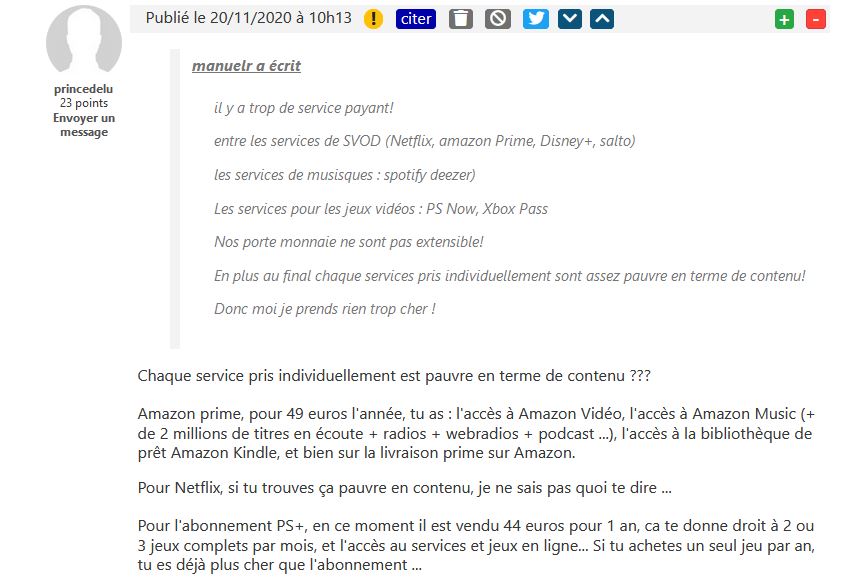 Cependant, l’utilisateur Princedelu pointe du doigt plusieurs points clairs : des offres sans engagements, en aucun cas obligatoires, et surtout, certains services sont loin d’être vides de contenus ou inintéressants !