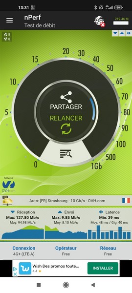 Puis deux tests de débits en extérieur :