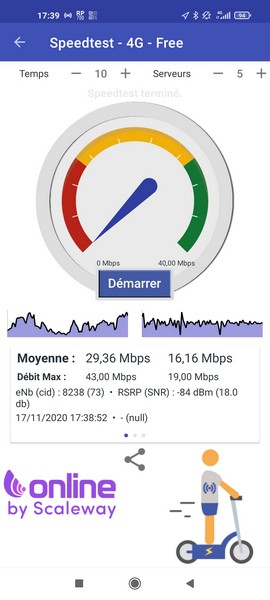 Ci-dessous, deux speedtests en intérieur :