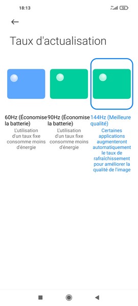 Diagonale de 6,67 pouces, définition Full HD+, taux de rafraîchissement jusqu’à 144 Hz et poinçon discret pour intégrer le capteur photo frontal, l’écran du Mi 10T coche pas mal de cases, mais pas celle de l’AMOLED par contre. Cela n’empêche pas qu’il est agréable à utiliser au quotidien, en intérieur comme en extérieur avec un peu de soleil grâce à une bonne luminosité, en navigation Web comme en jeu grâce à une bonne fluidité. Chaleur d’affichage et fluidité peuvent d’ailleurs être réglées depuis les paramètres.