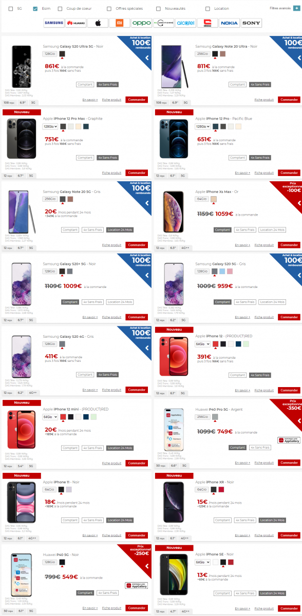 Et autre nouveauté, l’opérateur vient d’intégrer une catégorie “eSIM” dans sa boutique en ligne. Il sont au nombre de neuf :