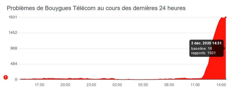 Selon Downdetector, depuis ce mercredi matin après 11h00, de nombreux abonnés Bouygues Telecom rencontrent des problèmes de connexion. Près de 2000 rapports sont recensés à l’heure où nous écrivons ces lignes. Les réseaux 3G et 4G de l’opérateur sont touchés.