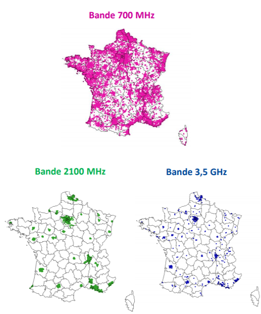 En France, trois bandes de fréquences permettent à ce jour de fournir un service 5G :