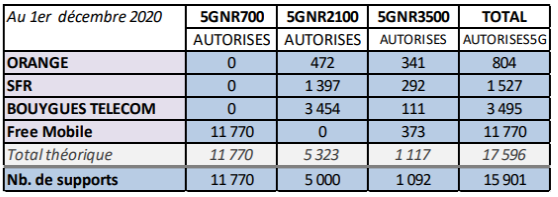 - 5 000 sites sont autorisés dans la bande 2 100 MHz (Bouygues Telecom, Orange et SFR) ;