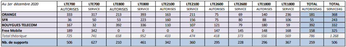 L’ANFR vient de publier les chiffres de déploiement des réseaux mobiles au 1er décembre 2020.