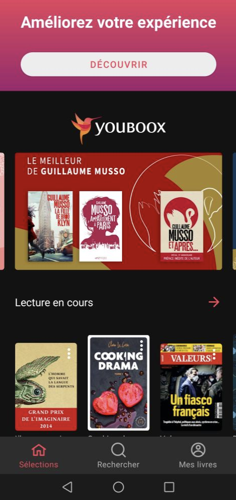 Lancée en avril dernier, l’offre payante de Youboox spécialement élaborée pour les abonnés Freebox et Free Mobile, permet d’accéder en illimité à des milliers d’ebooks, BD et comics mais également à deux nouveautés de taille, des milliers de livres audio mais aussi à des titres de presse dont L’Équipe, Libération, Les Echos ainsi que des magazines comme L’Express, L’Obs, Elle, Public. Le service compte plus de 2 millions d’abonnés.
