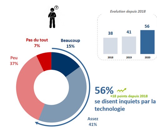 Mais il révèle aussi des inquiétudes concernant l’impact de ces nouvelles technologies sur leur vie. 56 % affichent des craintes, soit une progression de 15 points par rapport à l’ancien dernier. Celui-ci illustre des bienfaits du numérique moins évidents aux yeux des utilisateurs qu’il y a une dizaine d’années, que ce soit concernant la santé (45 %, contre 70 % auparavant) ou l’environnement (21 %, contre 49 %). 77 % aimeraient en être davantage dans les décisions prises autour de technologies controversées, 75 % jugent le gouvernement pas assez transparent sur les conséquences et 73 % comptent sur les scientifiques et journalistes spécialisés pour les éclairer.
