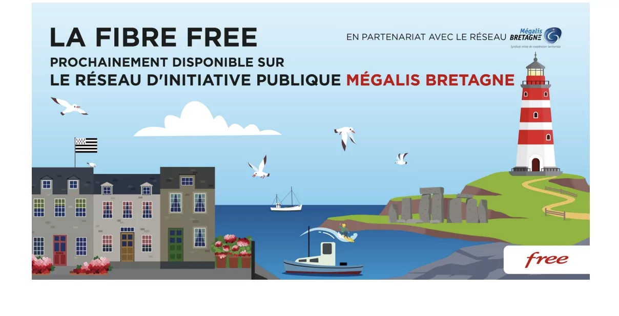 Ce projet Bretagne Très Haut Débit a pour objectif de déployer la fibre optique à 1,4 million de foyers, entreprises et sites publics. “La Région et des collectivités ont confié la maîtrise d’ouvrage du projet à Mégalis Bretagne pour la construction du réseau public régional en fibre optique, et à THD Bretagne, filiale d’Orange, l’exploitation et la commercialisation du réseau”, explique Free.