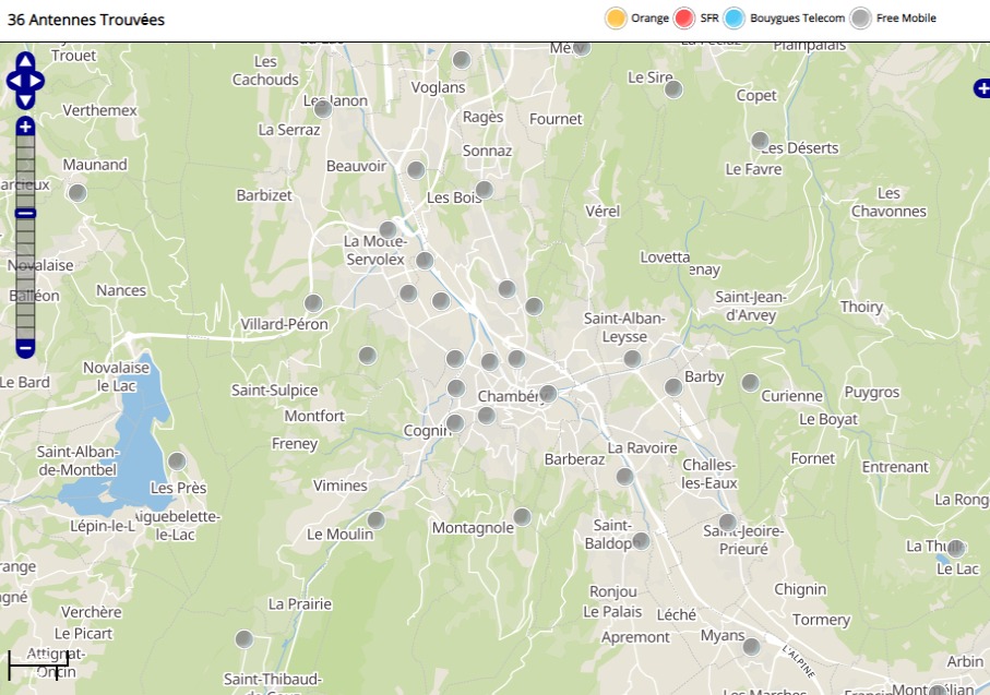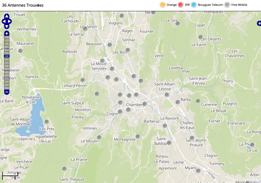 Découvrez la répartition des antennes mobiles Free 3G/4G sur Chambéry en Savoie