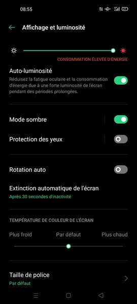 L’écran du Oppo A72 ne coche pas toutes les cases, mais au moins évite-t-il l’encoche et profite-t-il de la définition Full HD+. Pas de 90 Hz ou d’AMOLED, en revanche. Dans les paramètres, on peut choisir la température d’écran : plus froid, par défaut ou plus chaud.