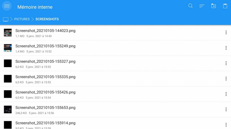 Les captures d’écran peuvent être retrouvées à l’aide d’un gestionnaire de fichiers tels que File Commander. Il suffira d’aller dans “Mémoire interne/Pictures/Screenshots” pour afficher ou récupérer les fichiers correspondants. La simple consultation est également possible grâce à l’outil VLC préinstallé.