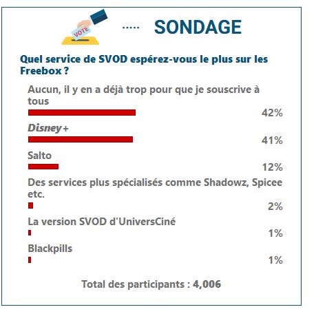 Disney+ était bien le service de SVOD le plus attendu sur les Freebox, cependant, une majorité de Freenautes considère qu’il y a déjà trop de plateformes pour souscrire à toutes.
