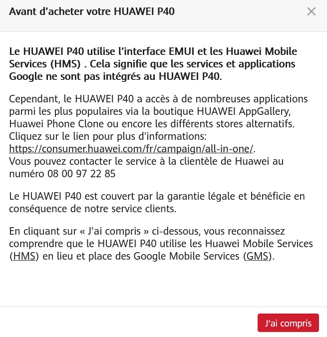 Les trois smartphones sont indéniablement de très bons appareils. Pourtant, quelques aspects nous ont permis d’écarter rapidement deux d’entre eux. Difficile en effet de conseiller le Huawei P30 Pro alors qu’il ne propose pas la 5G récemment lancée commercialement en France ou de vous orienter vers le Huawei P40 privé quant à lui des services de Google tels que le Play Store. Cet aspect du P40, Huawei le souligne d’ailleurs sur son propre site, lors d’un achat.