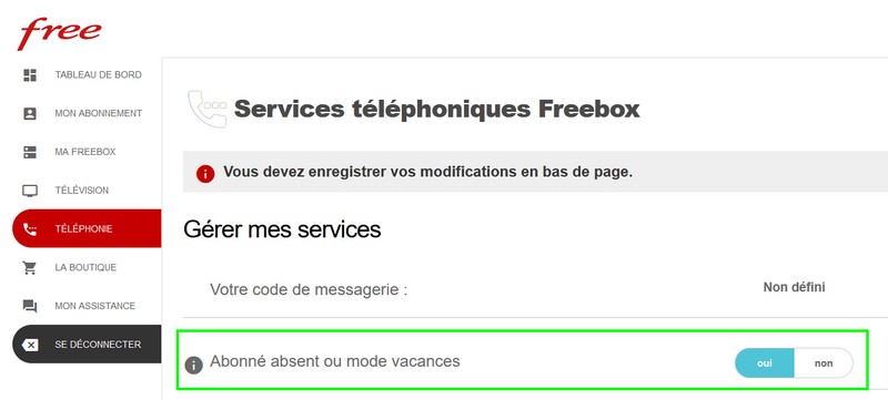 Pour l’activation du mode, il suffit de basculer le curseur à côté de l’option sur “oui”, de faire défiler la page des options et de cliquer sur le bouton “Enregistrer les modifications”. Notez d’ailleurs que la manipulation doit être réalisée en étant connecté au réseau de la Freebox associée au numéro de téléphone. Un message d’erreur vous le rappellera si vous tentez de le faire ailleurs.