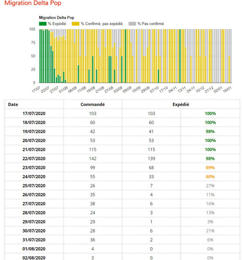 Le plus inquiétant est que les retard s’accumulent puisque Free ne livre quasiment plus du tout de Freebox Delta + Pop pour les abonnés ayant demandé une migration. En effet, depuis notre dernier pointage il y a 2 semaines, le pourcentage de Freebox expédiées a baissé de 3 points, passant de 65% à 62% Il faut noter toutefois que tant que la migration n’est pas effective, l’ancienne Freebox fonctionne toujours.