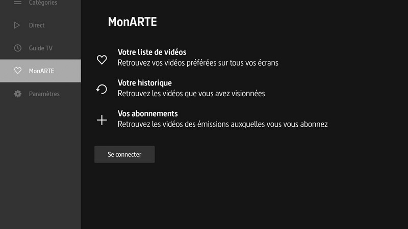 Mon Arte permet d’accéder à des fonctionnalités supplémentaires en étant connecté avec un compte : liste des vidéos préférées, historique des visionnages et vidéos des émissions auxquels on est abonné. De quoi partager ses préférences d’un appareil à un autre.