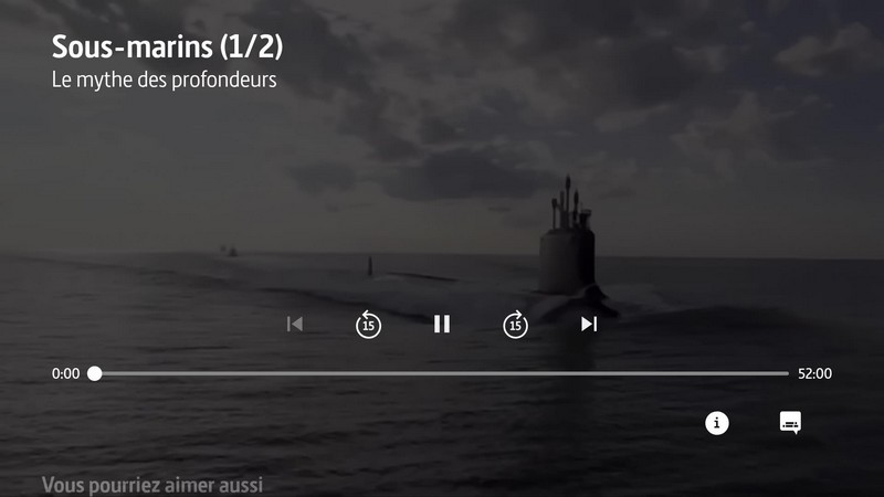 Deux boutons en bas à droite permettent quant à eux d’avoir les informations sur le contenu en cours de visionnage ou de changer la bande-son.