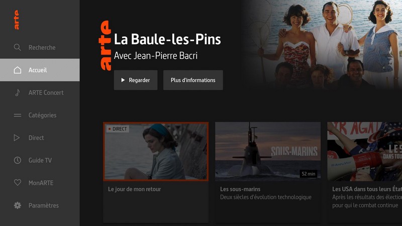 Actualité oblige, au moment où sont écrites ces lignes, l’application met en avant le film “La Baule-les-Pins” avec feu Jean-Pierre Bacri et la série documentaire “Les USA dans tous leurs États”. Il y a également le document “Vieillir enfermés”, racontant le quotidien de résidents esseulés d’un Ephad sur fond de crise du Covid-19.